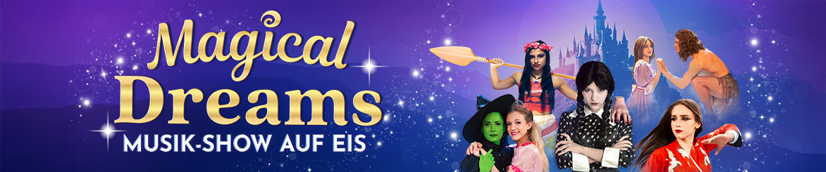 „Magical Dreams“ entführt dich mit mitreißenden Musical-Hits, faszinierendem Eiskunstlauf und atemberaubender Akrobatik in ein unvergessliches Show-Erlebnis. Erlebe große Gefühle, fesselnde Szenen und zauberhafte Momente auf einer Bühne, die zur lebendigen Fantasiewelt wird!