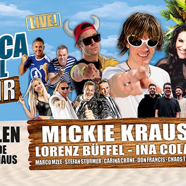Mallorca-Feeling in Bottrop mit den gute Laune Künstlern Mickie Krause, Lorenz Büffel, Ina Colada, Stefan Stürmer, Carina Crone, Don Francis, Chaos Team, Partyband Amys und der Original-DJ aus den Bergen Marco Mzee. Bei dem Line-up ist jede Menge Party-Spaß im Mallorca-Style und perfekte Urlaubsstimmung garantiert. Die Party des Jahres für die ganze Familie bei der fleißig mitgesungen und mitgetanzt werden darf.