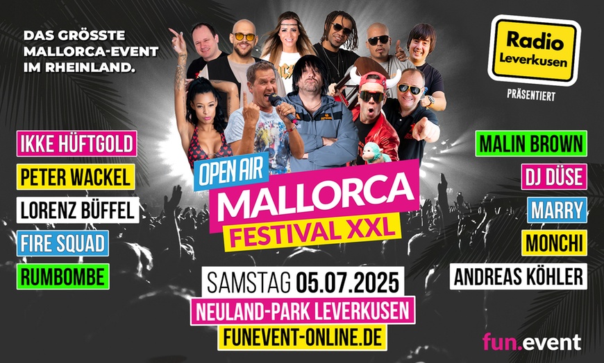 Erlebe das größte Mallorca-Festival im Rheinland mit echten Ballermann-Stars, kühlen Drinks und 10 Stunden Partyeskalation nonstop