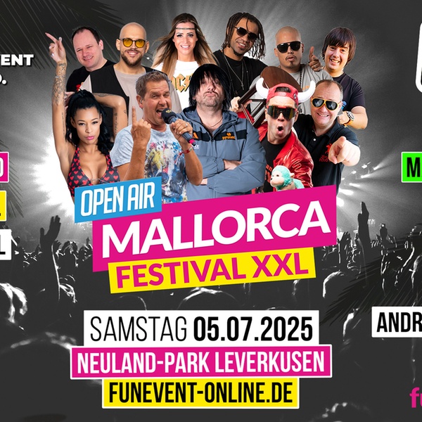 Sonne, Sangria und Schlager mitten in Deutschland? Das Mallorca Festival XXL bringt dir Urlaubsstimmung ohne Flugticket. Erlebe deine Lieblingsstars live und feiere mit tausenden Gleichgesinnten. Hier wartet pure Party-Eskalation auf dich!