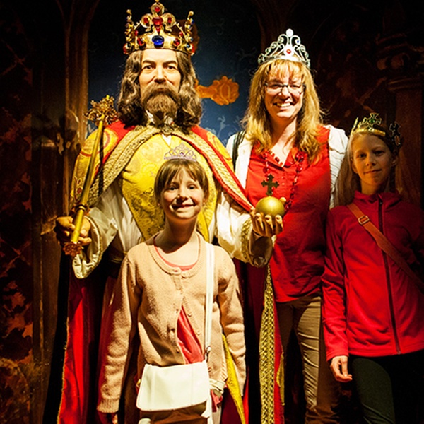 Schon der Eingang in das Musée Grévin Prague gleicht einem Star-Auftritt auf dem roten Teppich. Auf drei weitläufigen Stockwerken öffnen sich spannende Wachswelten: das magische Laboratorium aus der Zeit der Alchimisten und Astrologen, das Altprager Kaffeehaus mit Blick auf das alte Prag als Treffpunkt mit Franz Kafka, das Zaubertheater mit dem exzentrischen Mozart oder der Ballsaal mit Michael Jackson und Elvis Presley. Die Werkstatt gehört den Künstlern und Bildhauern, die sich um die Herstellung der Wachsfiguren kümmern und die Möglichkeit geben, ein eigenes 3D-Porträt zu erstellen. Interaktive Module und multimediale Aktivitäten sowie das französische Café Grévin mit französischen Köstlichkeiten runden den Besuch ab.
