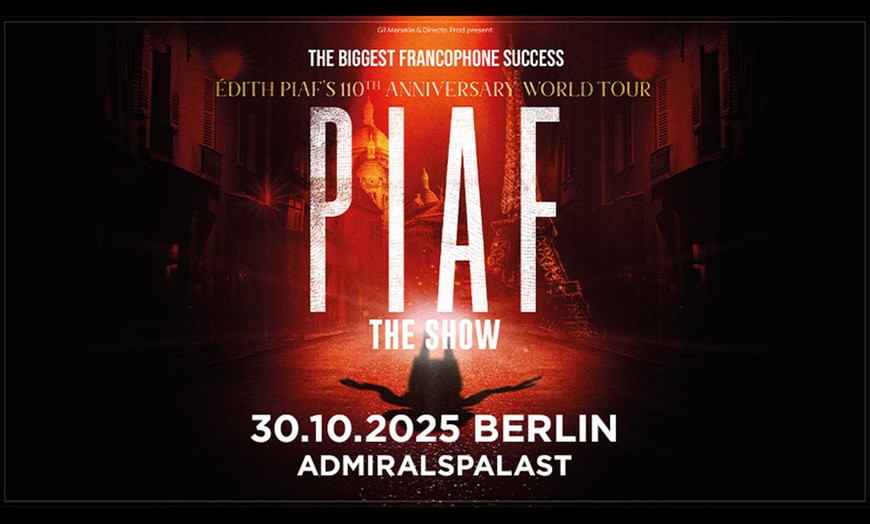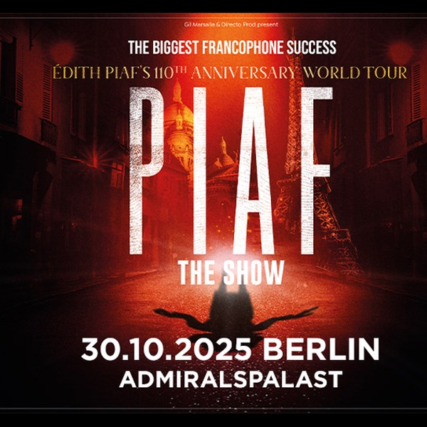 Mit PIAF! THE SHOW erwacht der Mythos Édith Piaf zu neuem Leben – in einem musikalischen Theatererlebnis, das weltweit über eine Million Menschen verzaubert hat. Die bewegende Geschichte der größten französischen Chansonsängerin entfaltet sich in eindrucksvoller Szenerie, von den Gassen Montmartres bis zum legendären Pariser Olympia. Nathalie Lermitte fängt mit ihrer unvergleichlichen Stimme Piafs Seele ein und begeistert Publikum und Presse gleichermaßen. Konzipiert von Gil Marsalla und von Piafs Familie als schönste Ehrung bezeichnet, verspricht dieser exklusive Abend im Berliner Admiralspalast am 30. Oktober 2025 ein unvergessliches Erlebnis voller Musik, Gefühl und französischem Flair.