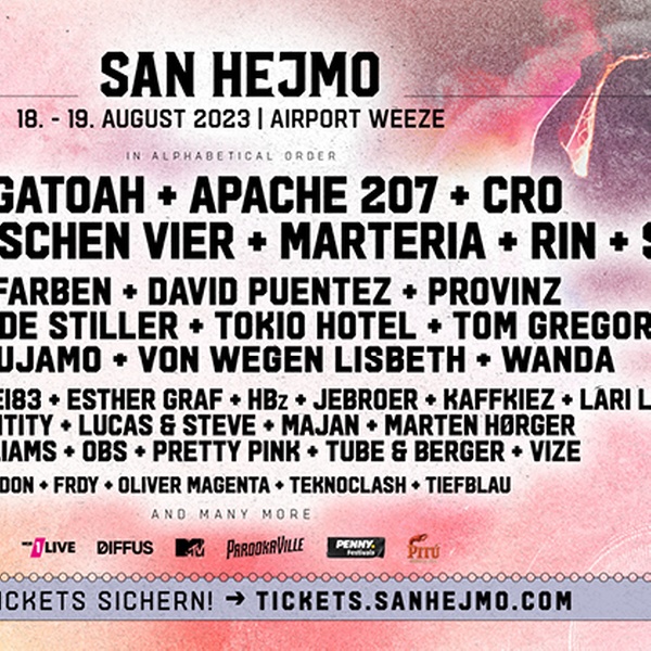 Das San Hejmo Festival in Weeze bei Düsseldorf ist das Musikfestival, das lokale und internationale Künstler auf einer einzigartigen Freiluftbühne präsentiert. Mit einer vielfältigen Auswahl an Musikgenres von Rock bis EDM bietet das Festival ein breites Spektrum an Live-Performances für Musikliebhaber jeden Geschmacks.