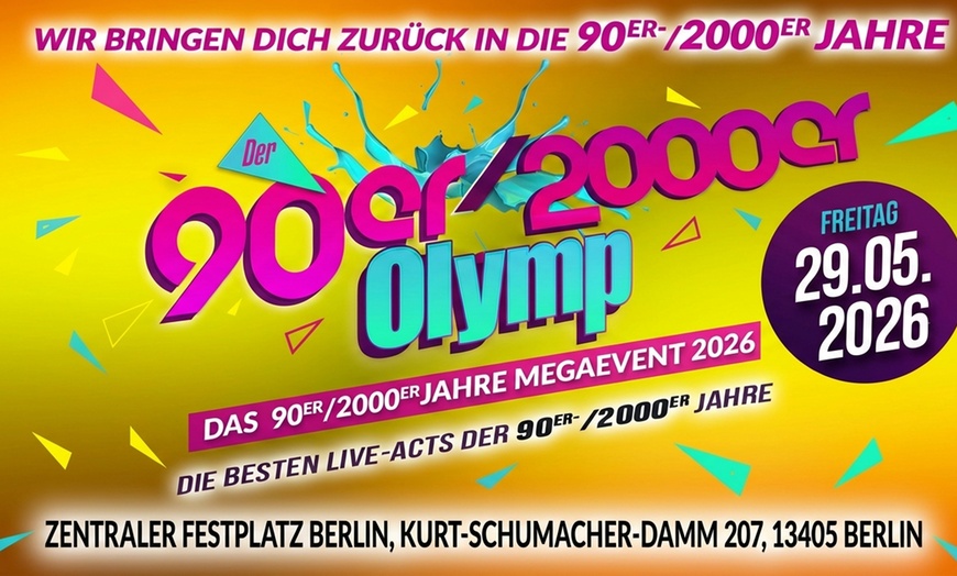 Stellt euch vor: Die Sonne lacht über dem Zentralen Festplatz Berlin, die Beats eurer Lieblingshits aus den 90ern und 2000ern pumpen durch die Boxen, und tausend Fans feiern pure Nostalgie. Am 29. Mai 2026 schlägt der 90er/2000er Olymp wieder seine Pforten auf – ein einziges Open‑Air‑Festival voller Flashbacks, Partystimmung und Kultsongs. Erlebt den Soundtrack eurer Jugend live unter freiem Himmel!