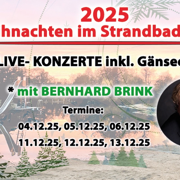 Erlebe ein einzigartiges Weihnachts-Highlight mit Bernhard Brink live auf der Bühne. Der Schlagerstar begeistert seit über 50 Jahren seine Fans und sorgt für eine unvergessliche Stimmung, die jeden Moment zu etwas Besonderem macht. Im stilvollen Saal des Restaurants im Strandbad Lübars erwartet dich neben musikalischen Highlights ein reichhaltiges Gänsebraten-Buffet mit klassischen Beilagen wie Rotkohl, Grünkohl, Kartoffelklößen und Salzkartoffeln. Die perfekte Kombination aus Entertainment und Genuss macht den Abend ideal für Weihnachtsfeiern mit Freunden, Familie oder Kollegen. Sichere dir frühzeitig Tickets und erlebe Musik und Festlichkeit hautnah.
