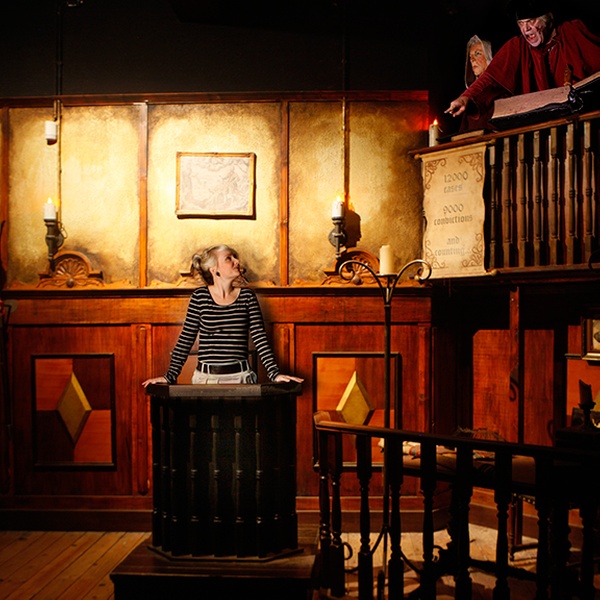 Als Kind hat man sich auf dem Rummel in Geisterbahnen mal mehr, mal weniger gegruselt, doch wenn die Figuren plötzlich lebendig werden und anhand von ausgefeilten Drehbüchern sowie Spezialeffekten schaurige Szenarien aus der düsteren Vergangenheit zum Leben erwecken, dann kann es einem durchaus kalt den Rücken runterlaufen. Die Schauspieler im Amsterdam Dungeon bieten mit ihren gruseligen Live-Shows spannende Unterhaltung für alle Sinne. Dabei treten sie den Beweis an, das Lachen und Kreischen manchmal ganz nah beieinander liegen. In rund 80 Minuten reisen Besucher des Dungeons zurück in die dunklen Zeiten der Stadt, wo finstere Gesellen, fiese Richter, mächtige Hexen und grausame Foltermeister schon warten … ebenso wie die ein oder andere Überraschung. Unterstützt von ausgefeilten Drehbüchern und spektakulären Spezialeffekten bieten neun erfahrene Schauspieler bis zu elf mitreißende und natürlich gruselige Live-Shows.