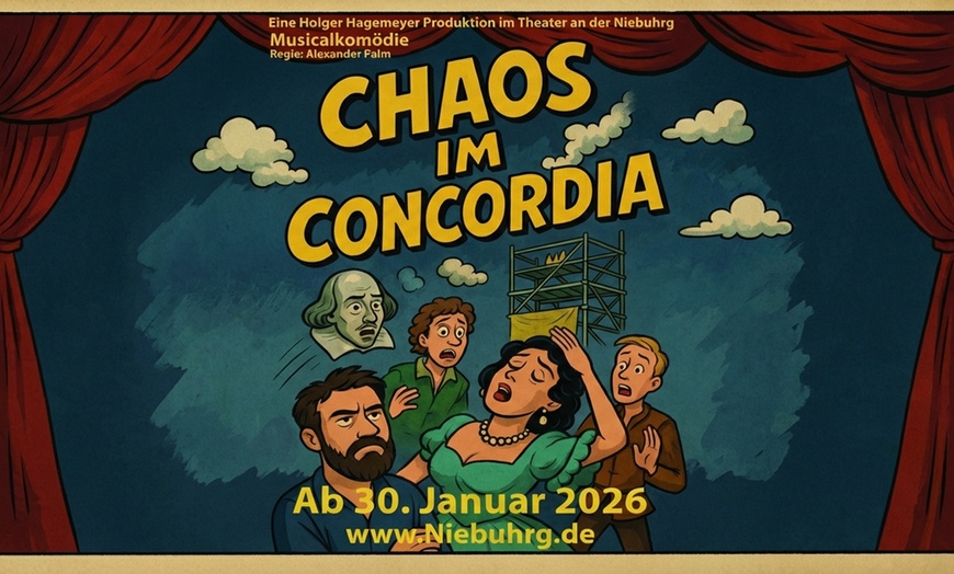 Ticket für die Revue „Chaos in Concordia“ vom 30.01. bis 01.03. im Theater an der Niebuhrg (26% sparen)
