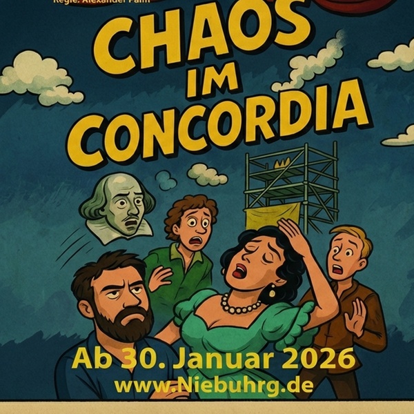 Diese Revue entführt dich mitten in das turbulente Chaos eines Theaters kurz vor der Premiere. Pointierte Figuren, witzige Dialoge und turbulente Szenen sorgen für durchgehende Unterhaltung und überraschende Wendungen. Ein gieriger Produzent, eine zickige Diva, chaotische Bühnenarbeiter und ein Regisseur am Rande des Nervenzusammenbruchs machen jede Szene zum Vergnügen. Die Revue lässt den Alltag vergessen und sorgt für jede Menge Lacher. Wer Lust auf Tempo, Humor und skurrile Momente hat, erlebt hier genau das Richtige. „Chaos im Concordia“ garantiert einen kurzweiligen Abend voller Komik, Spannung und Energie, bei dem du Theater von seiner unterhaltsamsten Seite kennenlernst und einen unvergesslichen Abend genießt.