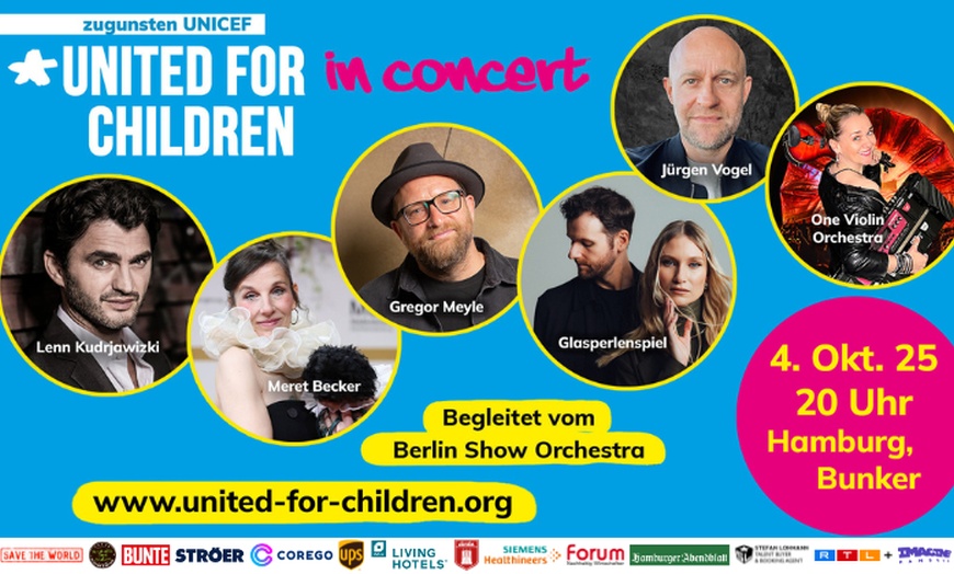 Am 4. Oktober 2025 verwandelt sich der Grüne Bunker in Hamburg in eine Bühne für ein außergewöhnliches Event. United for Children & Stars verbindet hochkarätige Musik mit dem Anspruch gelebter Nachhaltigkeit und bietet ein Konzerterlebnis, das sowohl unterhält als auch inspiriert. Ein Abend voller Energie, Vielfalt und Zukunftsoptimismus.