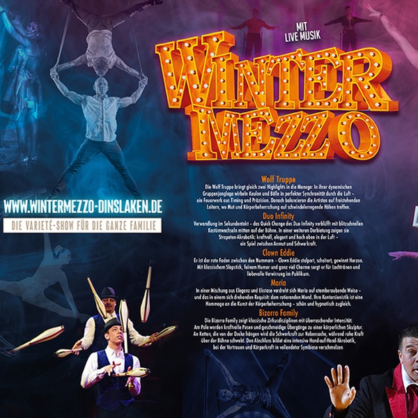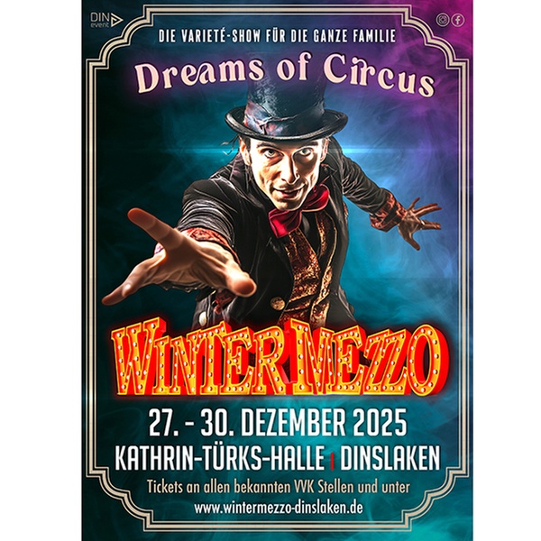 Willkommen bei Wintermezzo – dem Varieté für die ganze Familie! Tauchen Sie ein in die faszinierende Welt von „Dreams of Circus“, unserer brandneuen Show, die Sie mit einem einzigartigen Spektakel aus Akrobatik, Live-Musik, Clowns und wundersamen Darbietungen verzaubert. Eine eindrucksvolle Tanz- und Artistikshow für die ganze Familie.