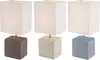 Geometrische Tischleuchte in dezenten Farben, mit Schalter und Schirm aus Textil für ein gemütliches Zuhause