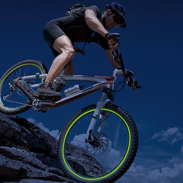 Lumineszierende Streifen und 4 Strahler für cooles grünes Licht an den Felgen von Mountainbikes oder BMX-Rädern