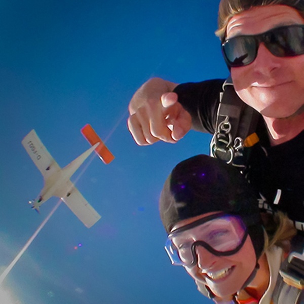 Mit einem erfahrenen Tandempiloten geht es aus 4000 Metern Höhe im freien Fall mit Adrenalin und Nervenkitzel zurück zur Erde