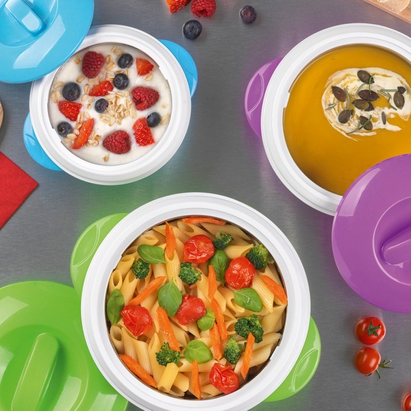 Dieses Thermoschüssel-Set in ansprechender Optik hält Speisen bis zu 4 Stunden warm oder kalt