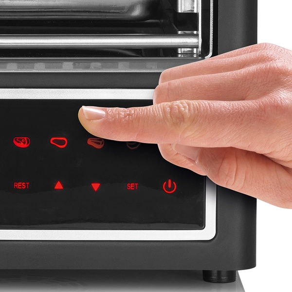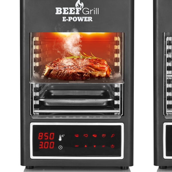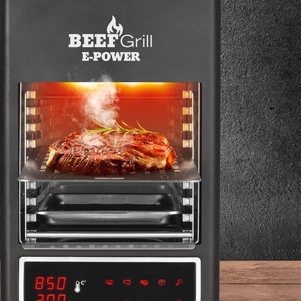 - Temperatur bis zu 850 °C für eine knusprige Kruste und saftiges Fleisch