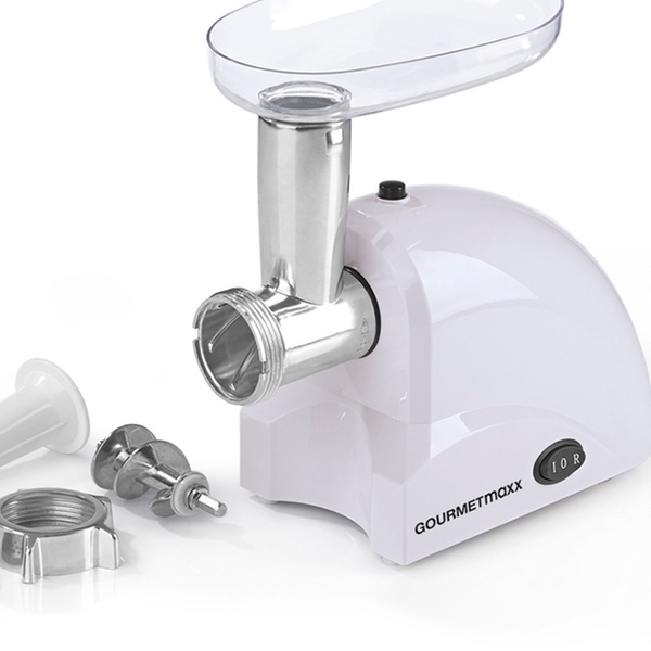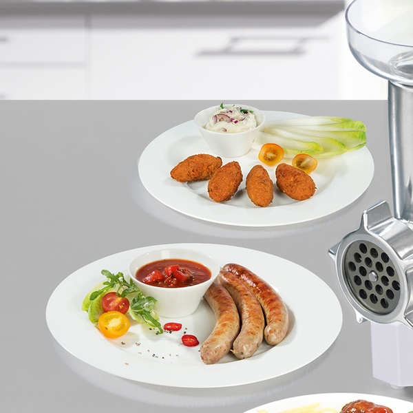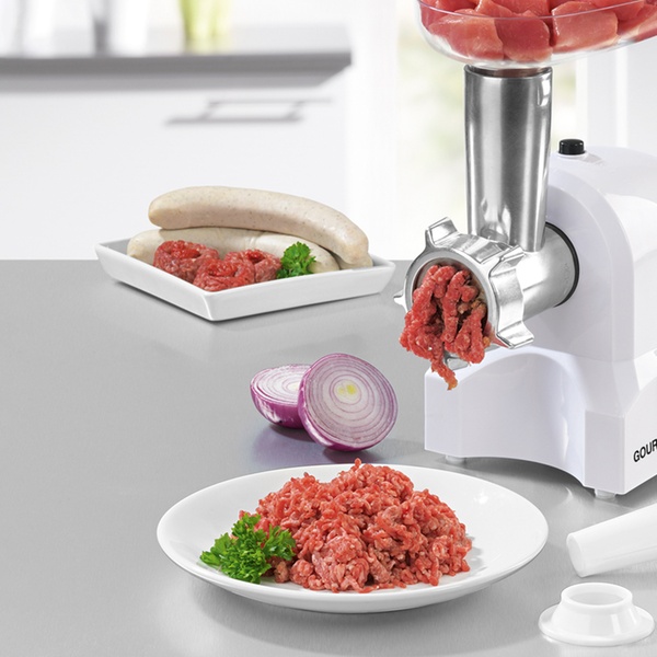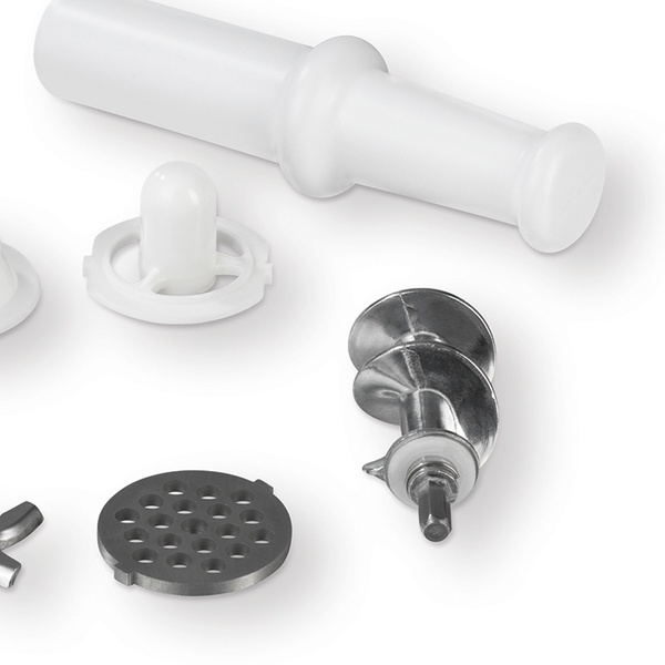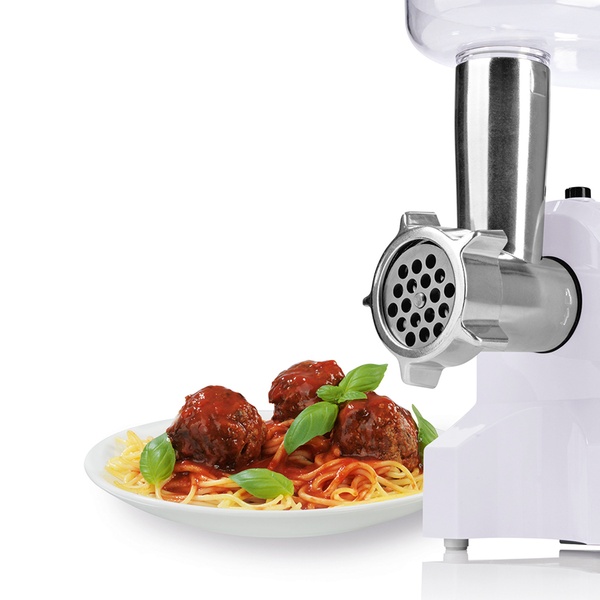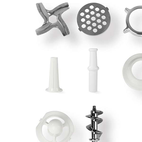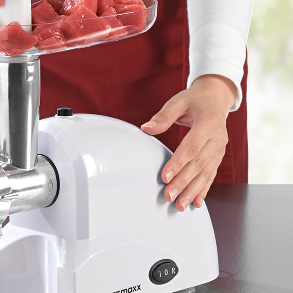 Dank dem Schneideinsatz mit 4 Klingen kann man aus einem Pfund Fleisch in weniger als 5 Minuten feines Hackfleisch schaffen