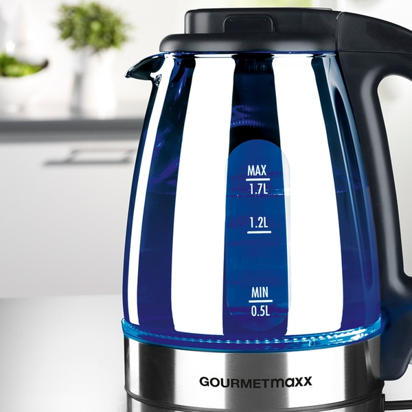 GOURMETmaxx Glas-Wasserkocher mit LED-Beleuchtung für 34,99 € (42% sparen)