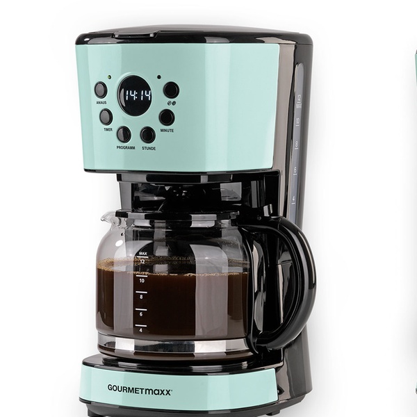 Retro-Kaffeemaschine im Look der goldenen 50er mit Glaskanne für bis zu 12 Tassen Filterkaffee, Warmhalteplatte und Permanentfilter