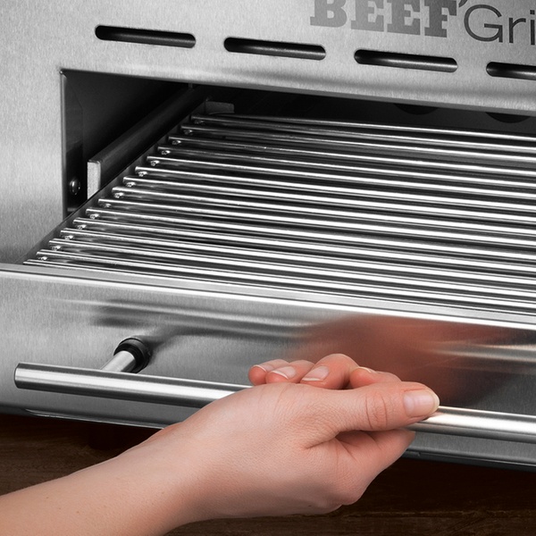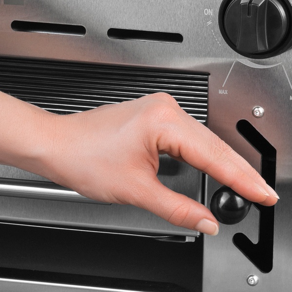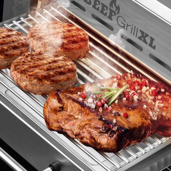 Ein Oberhitze-Gasgrill mit Edelstahlgehäuse und 3 Gar-Höhenstufen für die optimale Zubereitung von jeder Fleischsorte