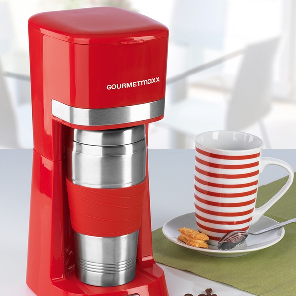 GOURMETmaxx Single-Kaffeemaschine in Rot mit Thermo- und Keramik-Becher für 24,99 € (50% sparen)