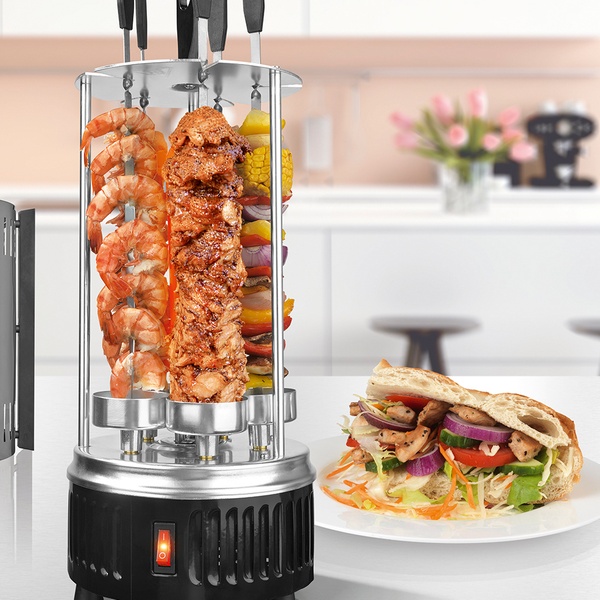 Elektrischer Tischgrill für die fettarme Zubereitung von Schaschlik, Dönerfleisch und Scampi