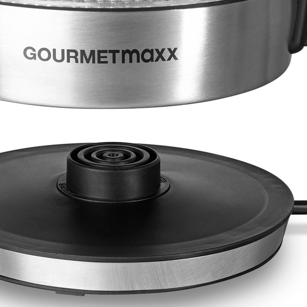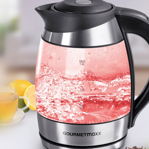 Der GOURMETmaxx Glas-Wasserkocher besticht durch sein modernes Design und eine clevere LED-Farbcodierung
