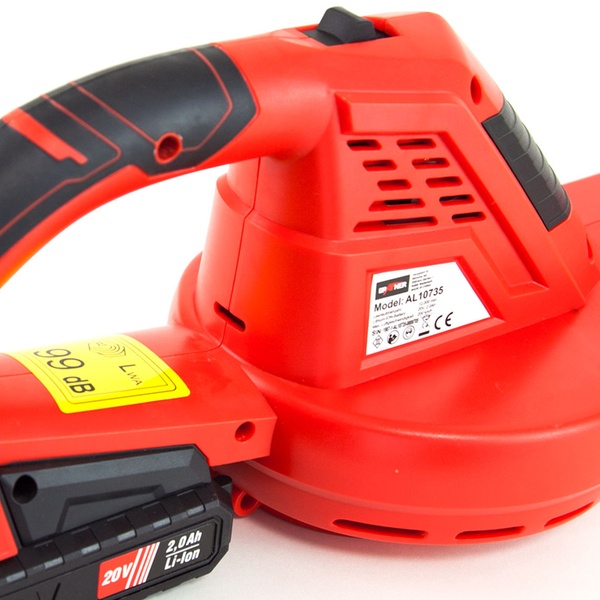 Durch die Lithium-Ionen Technologie verfügt der Akku-Laubbläser über einen 20 V Akku mit 2 Ah für ausgedehnte Arbeitseinsätze. Der Akku verfügt über eine Füllstandanzeige mit drei LEDs, auf der sich der aktuelle Ladezustand auf einen Blick ablesen lässt, mit dem im Lieferumfang enthaltenem Schnellladegerät, lässt sich der Akku binnen 4 Stunden wieder Aufladen.