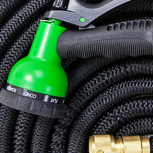 Ein robuster Gartenschlauch mit automatischem Ausdehnen und Zusammenziehen sowie Multifunktionsspritze mit 10 Funktionen