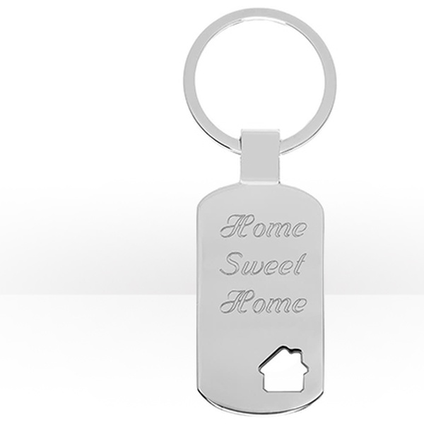 Anhänger aus Metall für den Schlüsselbund mit passendem Hausmotiv und der Möglichkeit zum Beschriften z. B. mit „Home Sweet Home“