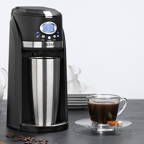 - Für Singles und unterwegs: Kaffeemaschine mit Mahlwerk und Isolierbecher to go