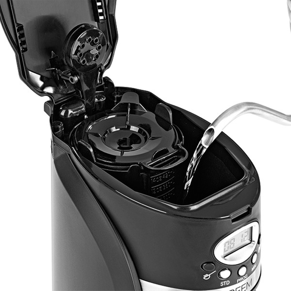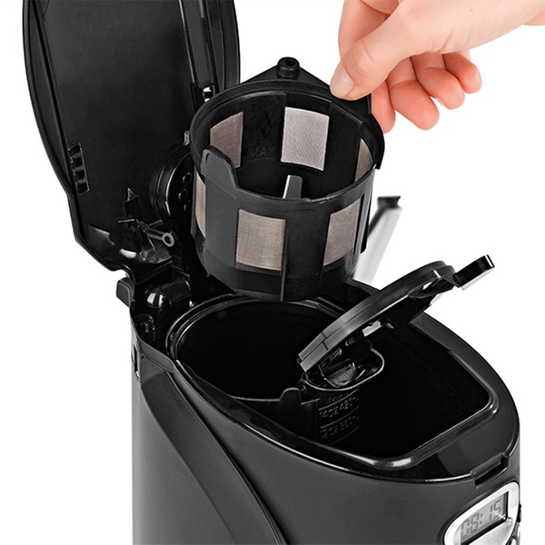 - 24-Stunden-Timer - startet die kompakte Filterkaffeemaschine zum gewünschten Zeitpunkt mit der Zubereitung