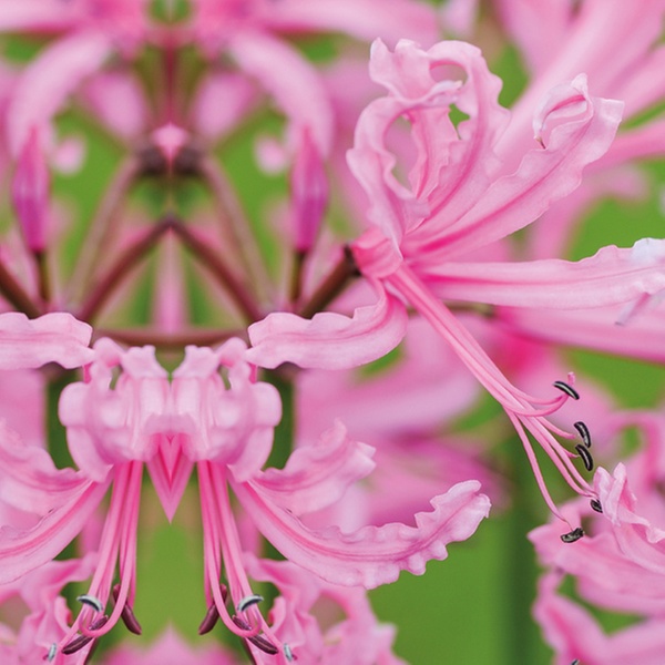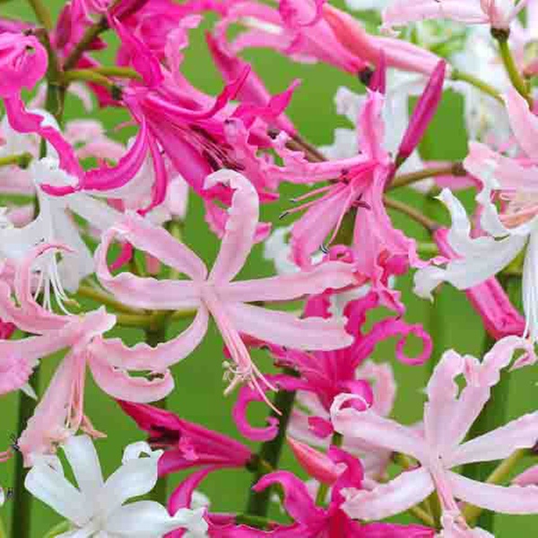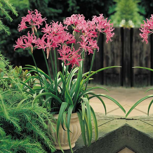Die Guernseylilien Bowdenii Pink zeichnen sich durch tiefgrüne, wiederkehrende Blätter und magentarosa Blüten aus
