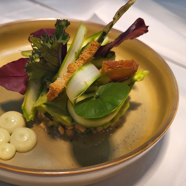 - Räucherlachs Tatar mit Dill-Senf-Crème und Fenchelsalat