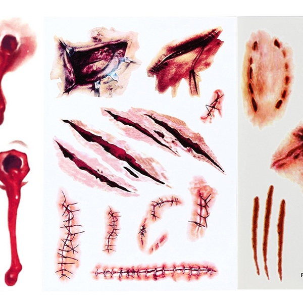 - 3x Halloween Kratz Wunden Tattoo, alle 5 Modelle