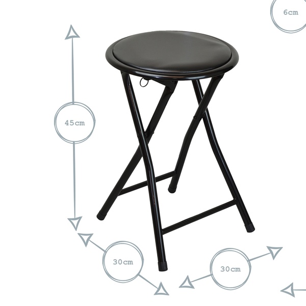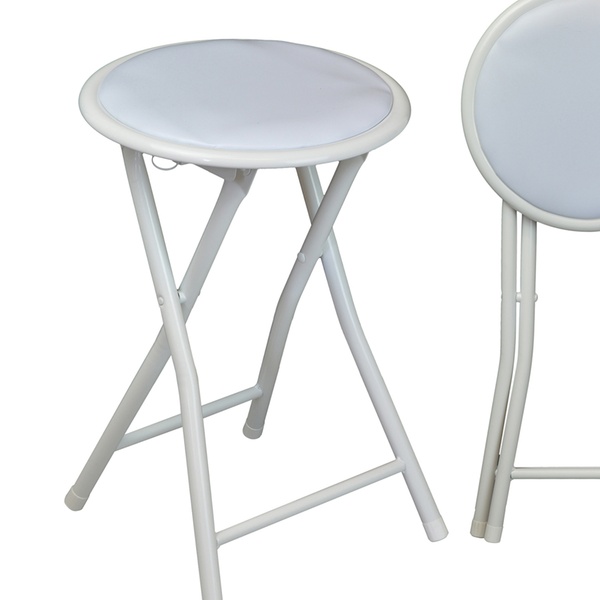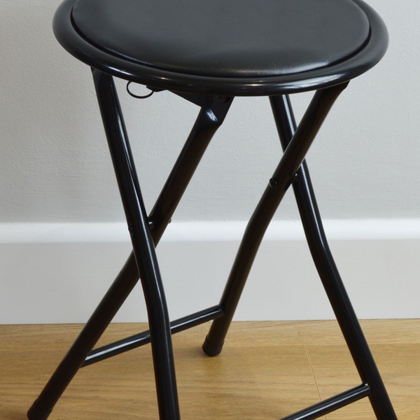 Flach zusammenklappbarer Stahl-Hocker mit weichem Polster und praktischen Fußschutzkappen