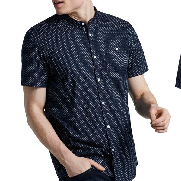 - Kurzärmlig mit Mao-Kragen und Knopfleiste zum Schließen