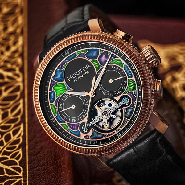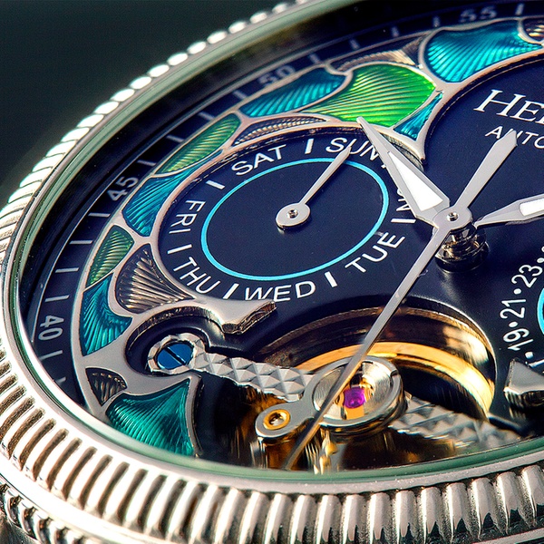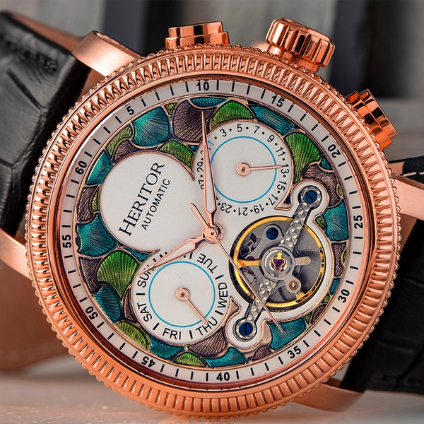 Armbanduhr mit Lederarmband, Edelstahlgehäuse und 20 Juwelen für elegante Herren