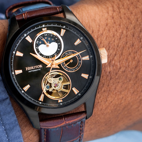 Angebot von Groupon Heritor Automatic Leder-Armband-Uhr, verkauft von RESULTCO EUROPE B.V