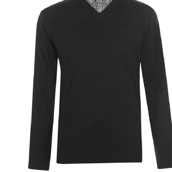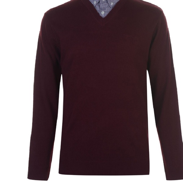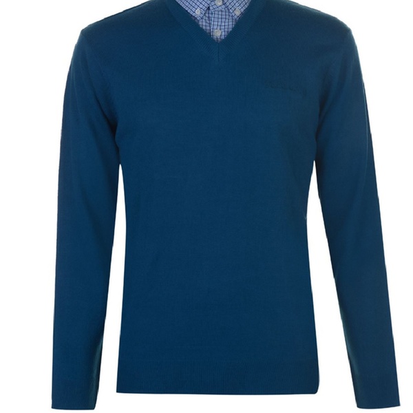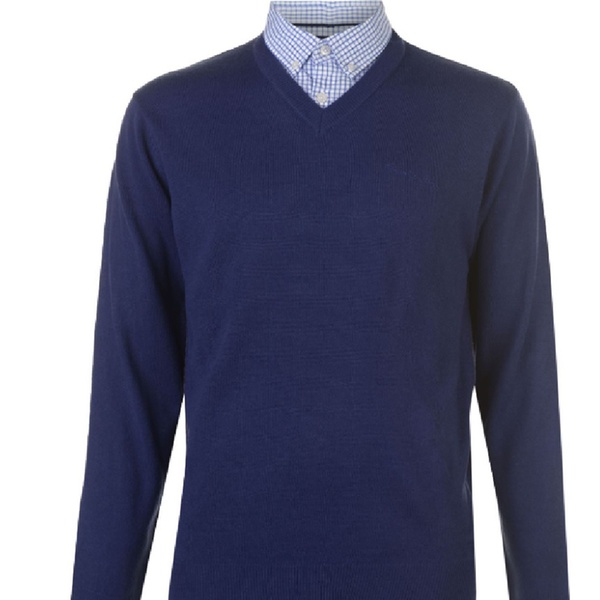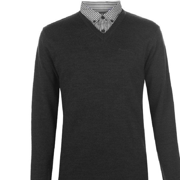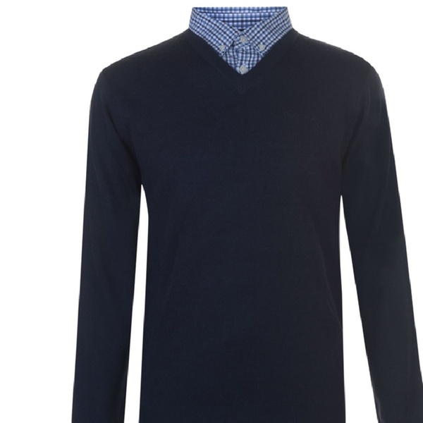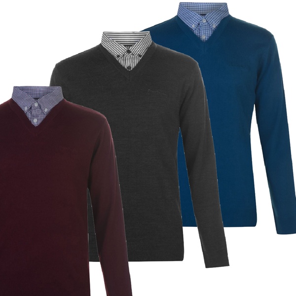 Stilvoller und bequemer Herren-Pullover mit langen Ärmeln, V-Ausschnitt, integriertem Hemdkragen mit 2-Knopf-Leiste und dezentem Logo