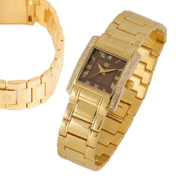 - Zifferblatt: braun, mit römischen Ziffern und Swarovski®-Kristall