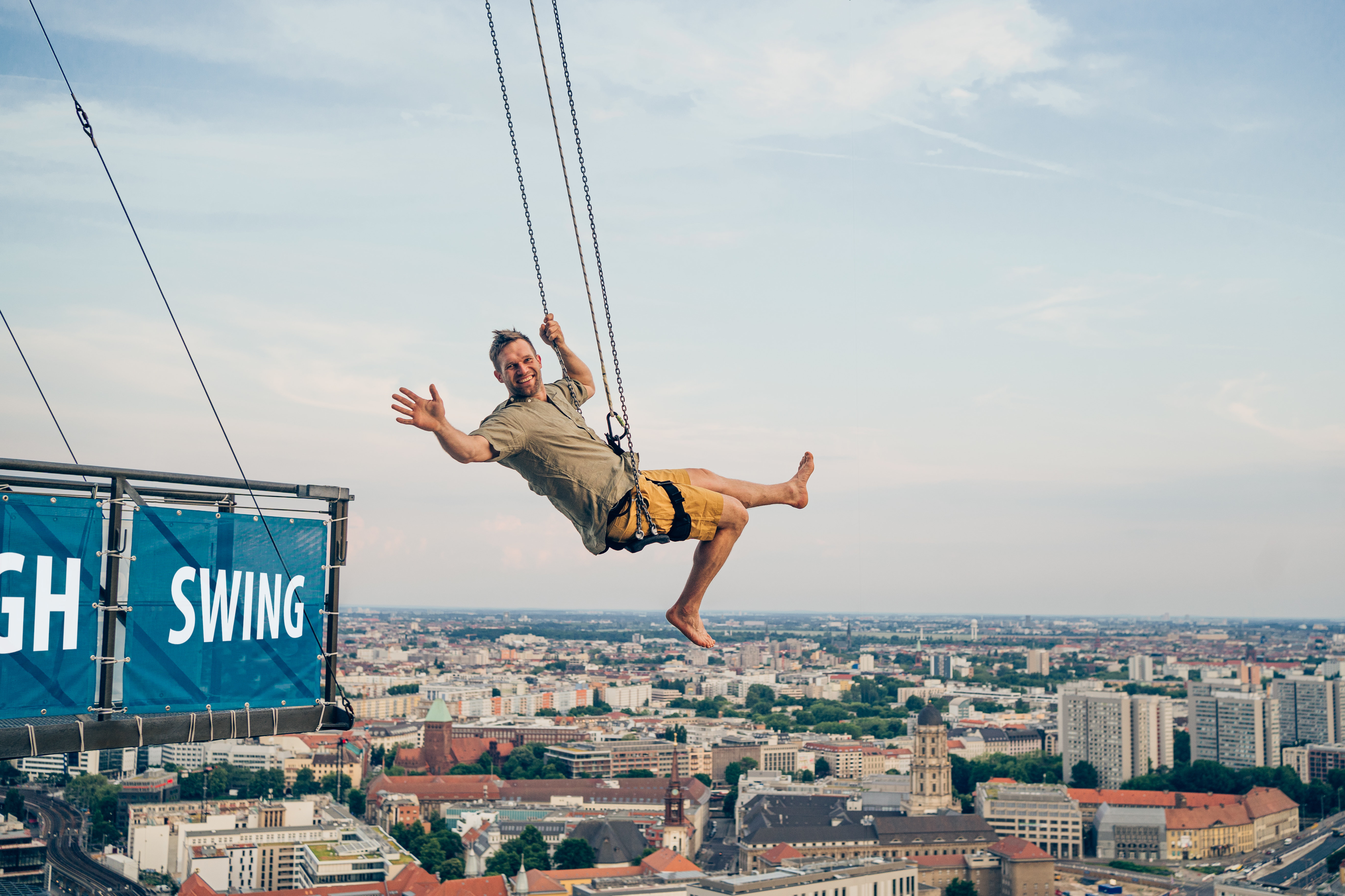 Lust auf den ultimativen Adrenalinkick? Die höchste Schaukel Europas wartet auf dich! Stell dir vor, du schwingst in 120 Metern Höhe und genießt den atemberaubenden Ausblick auf Berlin.
