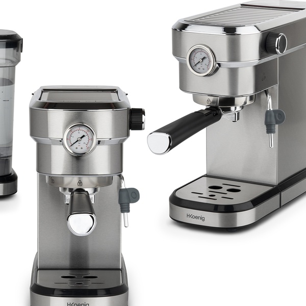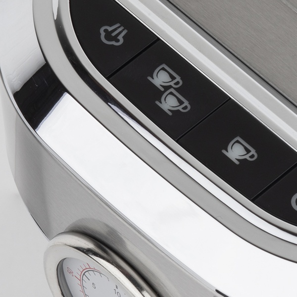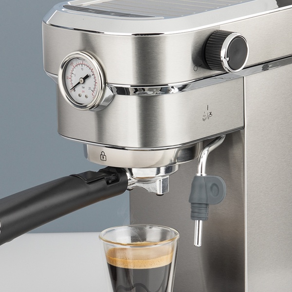Kompakte Espresso-Maschine mit herausnehmbarem Wassertank, Tassenwärmer, Thermoblock-Heizsystem sowie Pumpe mit integriertem Barometer