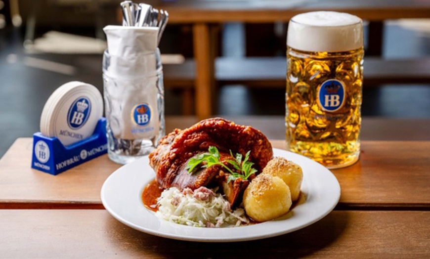 Erlebe bayerisches Wirtshausflair und Biergarten-Feeling im Hofbräu Wirtshaus mit herzhaften Klassikern und Original Hofbräu Bier