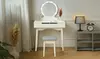 Eleganter Schminktisch mit 2 Schubladen, Hocker und rundem Spiegel mit 8 LED-Leucten