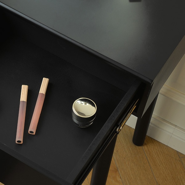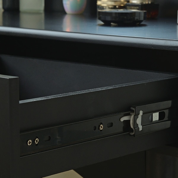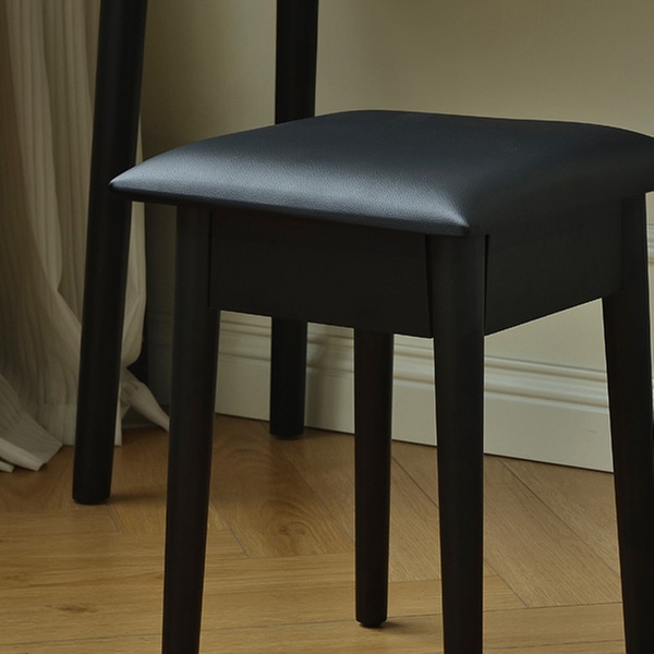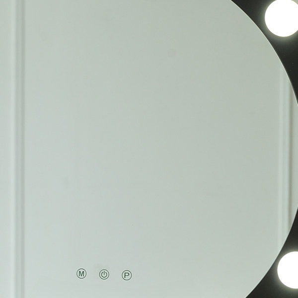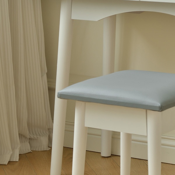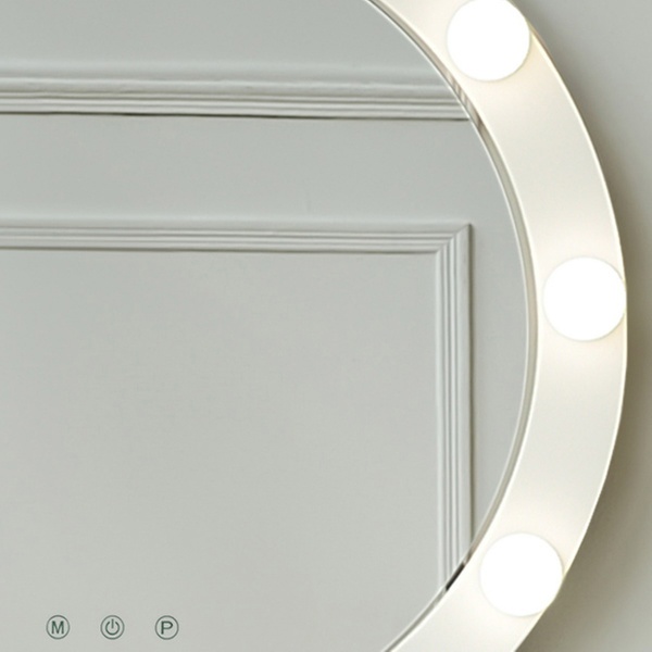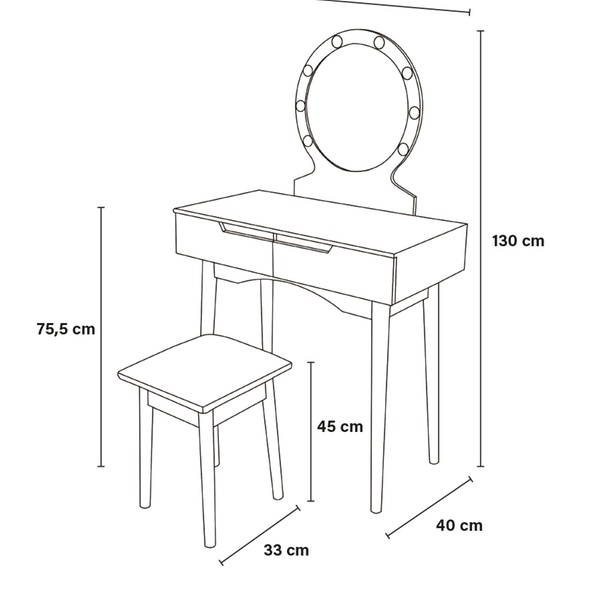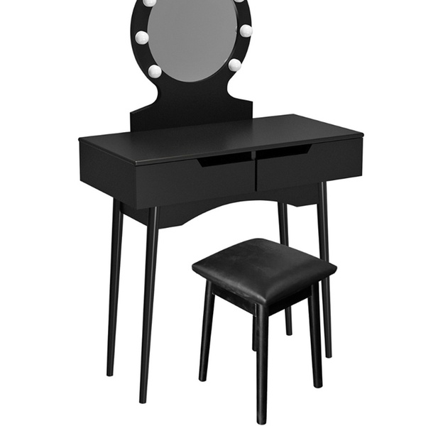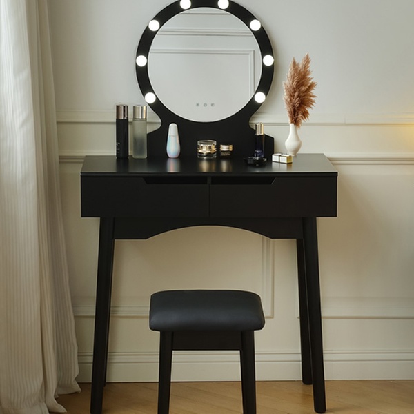Eleganter Schminktisch mit 2 Schubladen, Hocker und rundem Spiegel mit 8 LED-Leucten