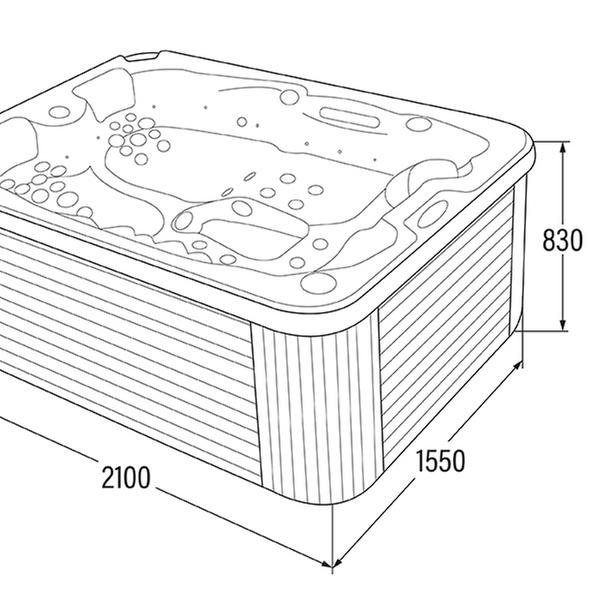 - Eingebautes Display zur Steuerung von Temperatur, Massagedüsen, Licht und Zirkulationspumpe