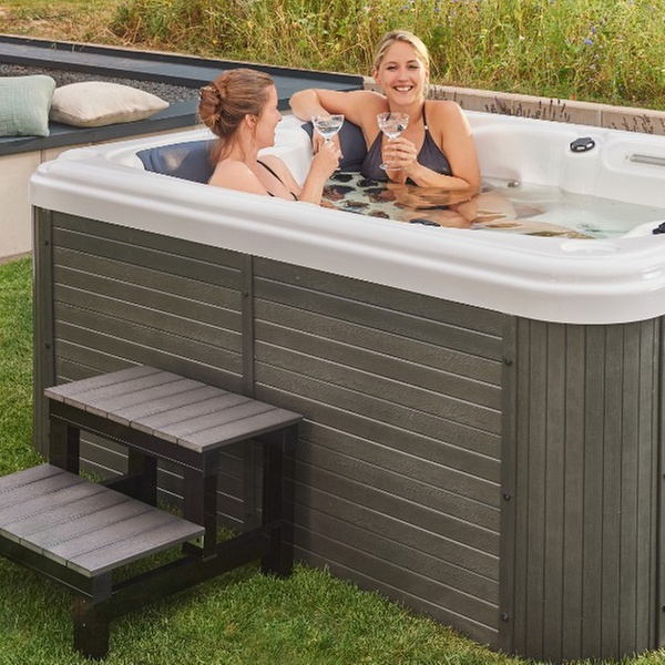Dieser Outdoor Whirlpool mit sagenhaften 51 Düsen macht aus jedem Garten oder Terrasse einen stilvollen Wellnessbereich mit absolutem Urlaubsflair.