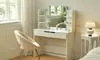 Strahlend weißer Schminktisch mit einem großen Spiegel, beleuchtet durch dimmbaren LED-Lampen – perfekt für glamouröse Looks