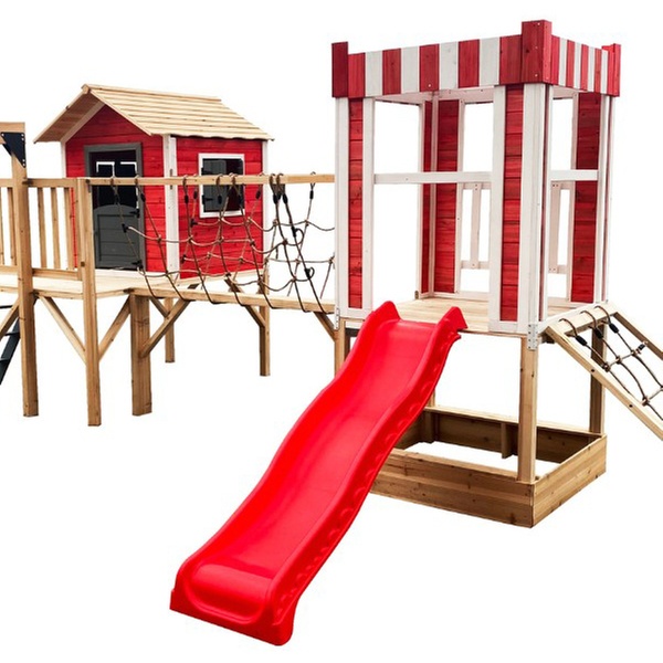 • Spielhaus-Set zum Klettern, Rutschen, Schaukeln, Buddeln
