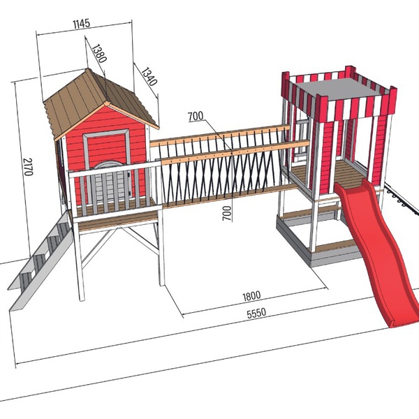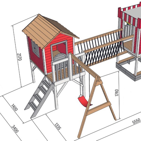• Optional mit Schaukel und Schaukelgerüst (B x H): 133,5 x 174 cm